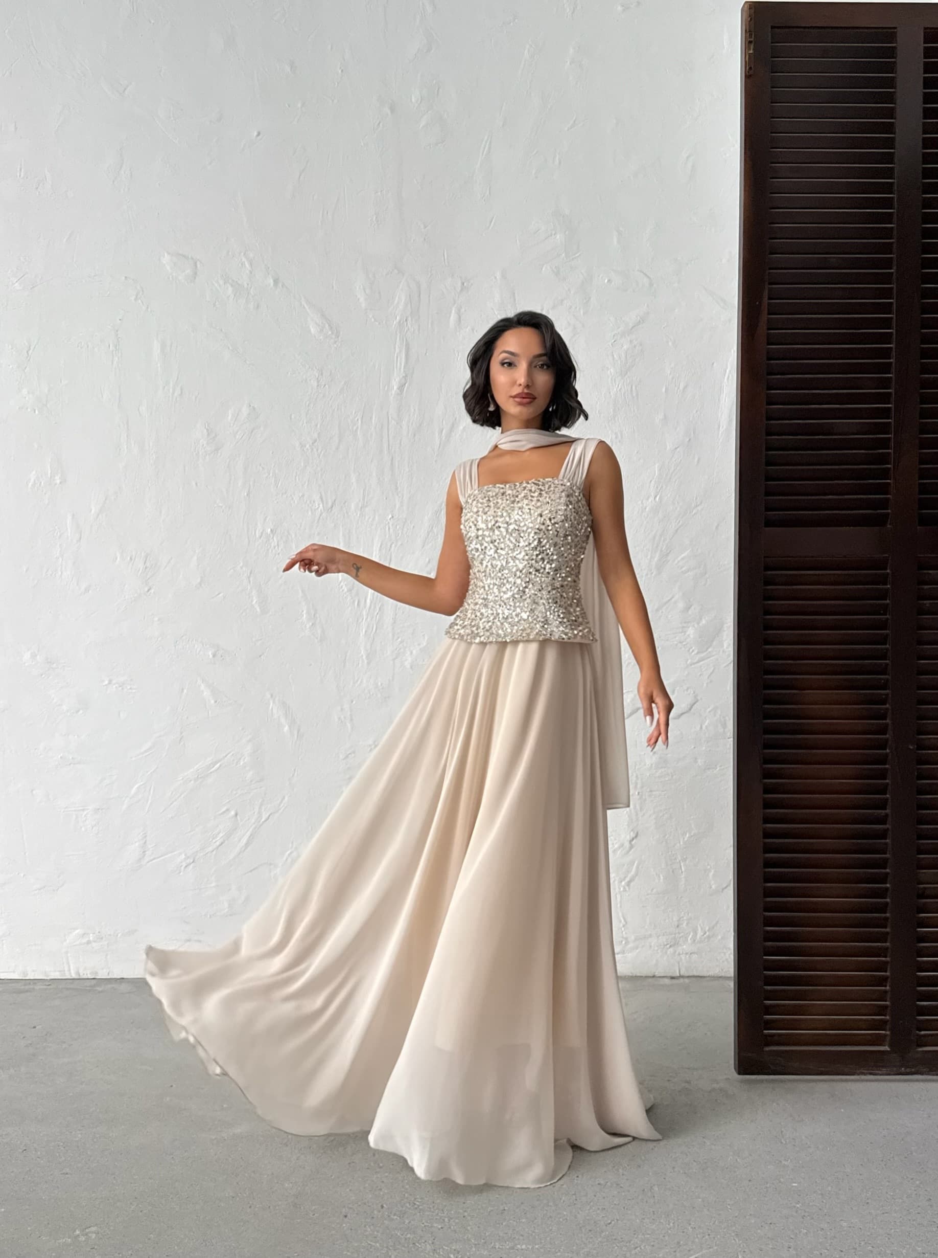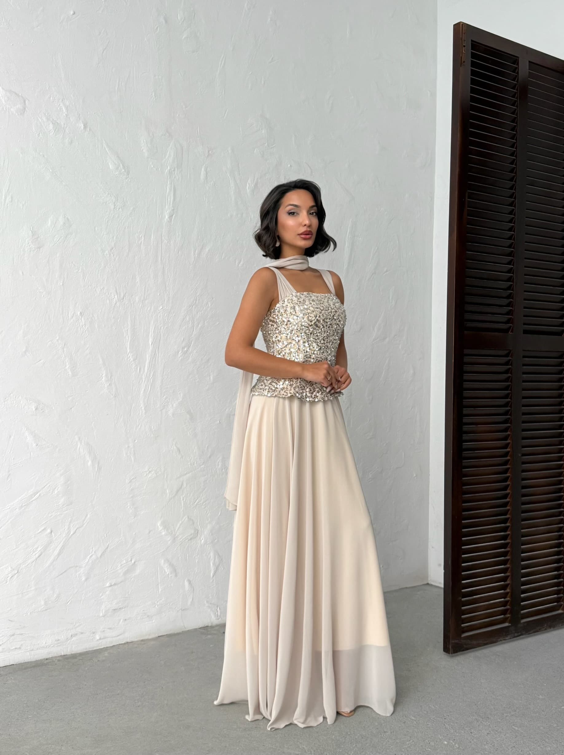 Şifon Garnili Abiye Elbise